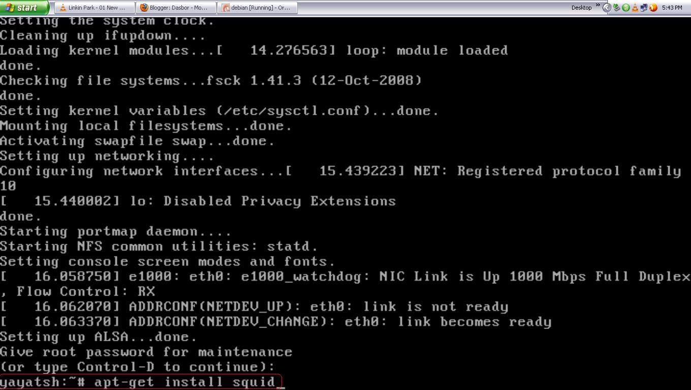 “apt-get install squid” [Enter] lalu pilih “Y” [Enter]